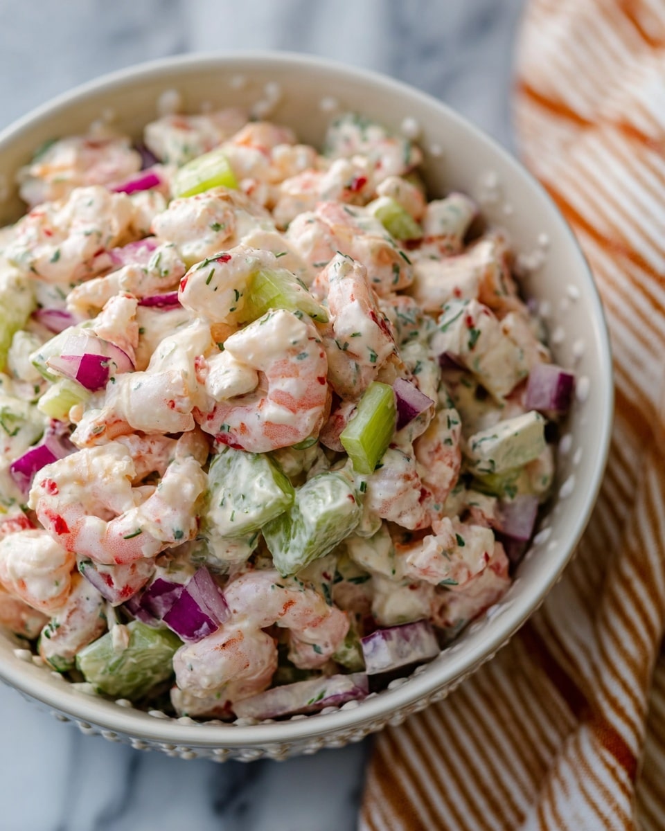 - Use Fresh, Thawed Shrimp: Thawed salad shrimp work best—avoid those frozen solid chunks to keep the texture tender.