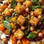 A nourishing and vibrant Anti-Inflammatory Glow Bowl featuring fluffy quinoa, roasted sweet potatoes, crispy spiced chickpeas, fresh spinach, and creamy avocado, all drizzled with a tangy tahini yogurt sauce. This recipe combines wholesome ingredients packed with antioxidants and anti-inflammatory properties for a delicious, balanced meal.