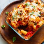 A comforting baked ziti layered with perfectly roasted cauliflower, bell peppers, and onions, blended with creamy cottage and mozzarella cheeses, fresh basil, and rich marinara sauce. This hearty vegetarian dish is easy to prepare, featuring tender pasta and caramelized vegetables baked to golden perfection, perfect for family dinners or entertaining guests.