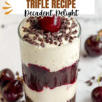 I love finishing this trifle with just a few simple garnishes: a little extra handful of mini chocolate chips on top for crunch, a few whole fresh cherries (if in season), and a light dusting of cocoa powder for that elegant look. Sometimes, a few delicate chocolate shavings or curls make it feel extra special too.