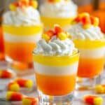 These Candy Corn Jello Shots are a festive and fun treat perfect for parties and celebrations. Layered with vibrant white, orange, and yellow gelatin mixtures infused with vodka, simple syrup, whipped cream, and a hint of almond extract, these shots mimic the classic candy corn colors and flavors. They are topped optionally with whipped cream and candy corn for an extra festive touch.