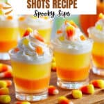 - Garnish – Whipped Cream & Candy Corn: Optional but oh-so-fun for topping off your shots with whimsy and extra flair.