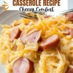 A comforting and hearty Cheesy Sausage and Potato Casserole featuring tender hash browns, smoky kielbasa, creamy sour cream, and sharp cheddar cheese, all slow cooked to perfection for a delightful family meal.