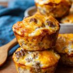 These Crazy-Good Cheesy Sausage Muffins are a savory and satisfying breakfast treat made without Bisquick. Packed with flavorful ground breakfast sausage and sharp cheddar cheese, they combine a tender crumb with a cheesy, hearty bite. Perfect for meal prep or a delicious grab-and-go breakfast, these muffins bake up golden and fluffy with a touch of sweetness from maple syrup or sugar.