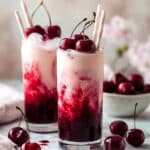 For a party, I sometimes serve my Cherry Earl Grey Milk Tea Recipe in glass mugs layered with crushed cherries and ice, topped with a sprig of fresh mint. Another cute idea is freezing cherries in ice cubes and using them in the iced version—it looks and tastes amazing as the ice melts!
