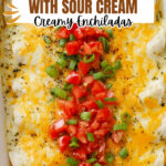 Delicious chicken enchiladas baked in a creamy sour cream white sauce, filled with shredded chicken and melted Monterey Jack and cheddar cheeses. This comforting Mexican-inspired dish is perfect for a family dinner and can be customized with your favorite toppings.