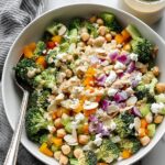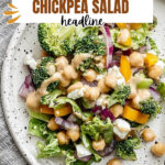 A fresh and nutritious chopped broccoli and chickpea salad tossed with a creamy lemon tahini dressing. This vibrant salad combines crunchy vegetables, tender chickpeas, and tangy goat cheese for a satisfying and flavorful dish perfect for lunch or a light dinner.