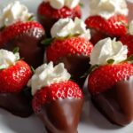 - Dip Strawberries: Dip each prepared strawberry into the melted chocolate until well coated. Place the dipped strawberries on a parchment-lined baking sheet and allow the chocolate to set while preparing the filling.