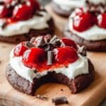 - Add Toppings: Spoon a generous amount of cherry pie filling on top of the frosting on each cookie. Garnish with mini chocolate chips or chocolate curls if desired for an elegant finish.
