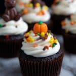 On top of classic Halloween sprinkles, I love decorating these cupcakes with fun edible eyeballs, little candy bats, or even homemade fondant pumpkins. These little touches make your cupcakes irresistible and perfect for candy tables or kid parties.