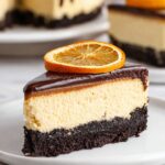 A luscious Chocolate Orange Cheesecake featuring a crunchy Oreo crust, creamy orange-infused cheesecake filling, and a rich dark chocolate ganache topping. Perfectly balanced flavors with a smooth texture and elegant finish.