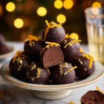 Delicious Christmas Truffles with a rich chocolate orange center, coated in dark chocolate and optionally decorated with orange peel or edible gold leaf. Perfect for holiday gifting or festive indulgence.