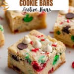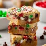 Delightful Christmas Cookie Bars bursting with festive colors from red and green M&Ms, white chocolate, and semi-sweet chocolate chips, topped with holiday sprinkles. These soft, chewy bars are simple to make and perfect for holiday gatherings or gifting.