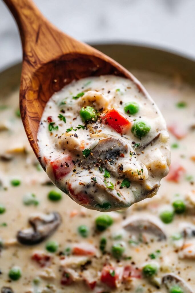 - Creamy, luscious sauce: The combination of butter, flour, milk, and cream creates a smooth, velvety base that clings perfectly to tender chicken and veggies.