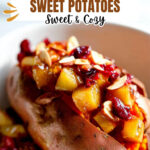 Deliciously sweet and warmly spiced cranberry apple twice-baked sweet potatoes featuring tender roasted sweet potatoes filled with a sautéed mixture of apples, dried cranberries, cinnamon, nutmeg, coconut sugar, and crunchy pecans. A cozy and flavorful side dish perfect for fall or holiday meals.