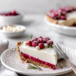 This Cranberry White Chocolate Tart combines a gluten-free oat and almond crust with a vibrant cranberry layer and a creamy vegan white chocolate topping. Perfectly sweetened with maple syrup and set with agar agar for a delightful, dairy-free dessert.