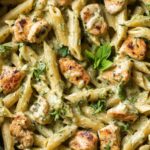This creamy chicken pesto pasta features tender bite-sized chicken breast cooked with garlic and Italian seasoning, tossed in a luscious Parmesan and mozzarella cheese sauce enhanced with fresh basil pesto. Perfectly cooked penne pasta is coated in the flavorful sauce for a rich and comforting meal that’s quick to make and guaranteed to satisfy.