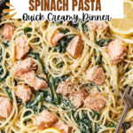 It’s best enjoyed fresh, but you can make the sauce and cook salmon ahead, then assemble and toss with pasta and spinach just before serving to keep textures fresh.