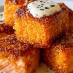 Crispy Bang Bang Salmon Bites are tender salmon cubes coated in a flavorful seasoned panko crust and fried to golden perfection. Served with a creamy and spicy Bang Bang sauce made from mayonnaise, sweet chili sauce, sriracha, honey, and lime juice, these bites make a perfect appetizer or snack with a delightful contrast of textures and flavors.
