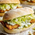 Toss chopped romaine with about 3-4 tablespoons of the dressing, just enough to coat evenly but keep it fresh and crunchy. Now, layer your sandwich: crispy chicken cutlets, dressed romaine, and a sprinkle of extra Parmesan. Close it up and take a big bite—you’ve earned it!