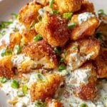 Crispy Smashed Potato Salad is a delightful twist on traditional potato salad, featuring tender baby potatoes that are boiled until just fork-tender, smashed flat, roasted until golden and crispy, then tossed in a tangy herbed Greek yogurt dressing with mayo, Dijon mustard, lemon, garlic, and fresh herbs. The salad is topped with crispy potato bits and fresh scallions for extra texture and flavor, perfect for serving warm as a flavorful side dish.