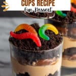 Since this is a cold dessert, there’s no reheating involved. Just give refrigerated cups a good stir or fluff up with a spoon if the cream has settled. Remember to add the gummy worms or other toppings fresh for the best texture and flavor.