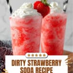 A refreshing and indulgent Dirty Strawberry Soda made with strawberry soda, vanilla coffee creamer, and strawberry syrup, perfect for a quick and fun treat.