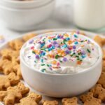 Finally, gently fold in the rainbow sprinkles. This is the moment it turns into dunkaroo magic! Save a few sprinkles to scatter on top just before serving for a playful finish. Serve immediately with graham crackers, apple slices, or your favorite dippers.