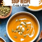 Yes! This Easy Pumpkin Soup Recipe is perfect for making ahead. Prepare it completely and keep it refrigerated. When ready to serve, just reheat gently on the stove and add your toppings last minute to keep them fresh and crunchy.