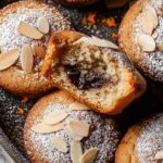 Pipe or spoon your frangipane topping over the mincemeat in each pastry case. I like to pipe it—it’s faster and more even, but spoons work just fine too. Sprinkle flaked almonds on top for that lovely crunch and golden look. Cover the whole tray with an aluminum foil tent (this keeps the topping from browning too quickly) and bake for 15 minutes. Then, remove the foil and bake for another 10-15 minutes until the pastry is golden and the almond cream is puffed and set. Let them cool in the pan before transferring to a rack, then dust with icing sugar for that festive touch.