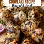 This Greek Chicken Souvlaki recipe features tender, marinated chicken pieces grilled to perfection with classic Greek seasoning, garlic, lemon juice, and olive oil. Perfect for a flavorful main course, this dish can also be cooked on a grill pan, in the oven, or air fryer. Marinating overnight ensures juicy, tender chicken packed with Mediterranean flavor.