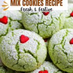 Delightfully festive Grinch Cookies made with white cake mix, peppermint extract, and vibrant green food coloring, topped with charming red heart-shaped sprinkles. These soft, minty cookies are perfect for holiday celebrations and easy to prepare in under 30 minutes.