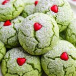 Delightfully festive Grinch Cookies made with white cake mix, peppermint extract, and vibrant green food coloring, topped with charming red heart-shaped sprinkles. These soft, minty cookies are perfect for holiday celebrations and easy to prepare in under 30 minutes.