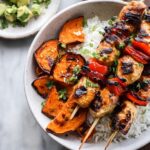 - Serve the Dish: Plate the grilled chicken skewers and sweet potatoes over steamed rice. Top with freshly made avocado salsa and garnish with extra fresh herbs if desired. Enjoy warm.