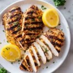 This flavorful grilled chicken breast recipe features a zesty marinade of olive oil, fresh lemon juice, garlic, and herbs, resulting in juicy, tender, and perfectly cooked chicken breasts with beautiful grill marks. Ideal for a quick weeknight dinner or meal prepping lunches and salads.
