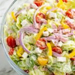 A flavorful and easy Grinder Salad featuring a zesty homemade dressing combined with fresh iceberg lettuce, tangy pepperoncini, savory salami, turkey, and provolone cheese. Perfect for a quick lunch or light dinner.