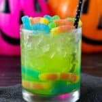 Since this punch loses fizz quickly, store any leftovers in a sealed container in the fridge and shake gently before serving again to try to restore some bubbles. I usually remove the gummy worms after serving to prevent them from making the punch too sweet or sticky overnight.