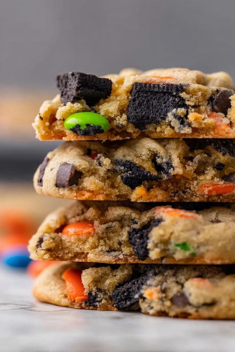 - Flavor Contrast: Halloween Oreos add little pockets of creamy chocolate that melt into the dough, perfectly complemented by the crunch and sweetness of the colorful M&M’s.