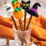 - Pretzel sticks: Choose sturdy, crunchy pretzels — thin pretzels might break or get soggy once decorated.