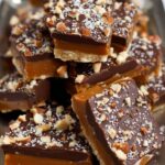 This homemade toffee recipe features a rich, buttery base cooked to perfection, topped with melted semisweet chocolate and crunchy pecans. It results in a deliciously sweet and crunchy treat that’s perfect for snacking or gifting.