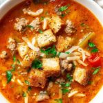 I always finish this soup with fresh parsley for a pop of color and freshness. Parmesan cheese is a non-negotiable for me — melt that salty, nutty goodness on top and it just elevates the whole bowl. And croutons? Yes please! They add the perfect crunch that contrasts with the tender pasta and sausage.