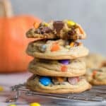 Absolutely! This recipe is very forgiving and lets you get creative. Just chop your candy into bite-sized pieces, avoiding anything too hard that might ruin teeth or the texture of your cookies. Chocolate, caramel, peanut butter cups, candy corn, even gummy candies can work — though gummies soften and melt differently, which can be fun.