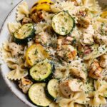 - Add Cheese and Chicken: Sprinkle freshly grated Parmesan cheese over the pasta and toss to combine. Chop the cooked chicken breasts into bite-size pieces and return them to the skillet, mixing everything together evenly.