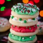 While classic Lofthouse cookies are stunning with just colorful sprinkles, I like to get creative sometimes. A sprinkle of edible glitter or tiny pearl candies really adds a touch of elegance if you’re gifting or saving these for a special occasion. For holidays, themed sprinkles never fail to brighten up the tray.