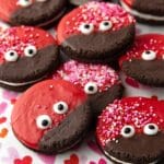 Delight in these adorable Love Bug Oreo Cookies, perfect for Valentine’s Day or any occasion that calls for a sweet treat with a festive twist. Oreo cookies are dipped in melted red chocolate, decorated with royal icing eyes, and topped with micro heart sprinkles to create charming edible bugs that are easy to make and sure to impress.