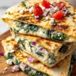 These Mediterranean Quesadillas combine fresh spinach, tangy feta, creamy mozzarella, and red onion wrapped in a warm flour tortilla for a quick, flavorful, and satisfying meal perfect for lunch or a light dinner.