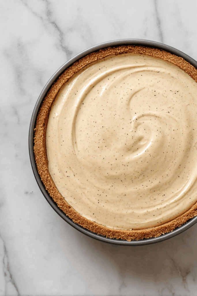 Pour the filling over your prepared crust then bake at 325°F (160°C) for about 60 minutes. You’ll notice the edges set and the center will remain slightly jiggly—that’s exactly how you want it. Turning off the oven and leaving the cheesecake inside with the door ajar for 10 minutes prevents sudden temperature shocks that cause cracking.