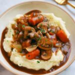 - Serve: Prepare mashed potatoes, rice, or pasta as desired. Spoon the Mushroom Bourguignon generously over the base for a hearty meal. Enjoy!