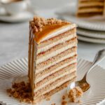 A decadent no-bake icebox cake layered with creamy Biscoff cookie butter and mascarpone mixture, perfectly chilled for 24 hours. This easy dessert features crispy Lotus Biscoff cookies combined with a luscious whipped cream filling, offering a delightful balance of crunch and smoothness, finished with a drizzle of warm Biscoff spread and crushed cookies for extra indulgence.