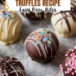 No Bake Oreo Truffles are decadent, bite-sized treats made by combining crushed Oreo cookies with cream cheese, then dipped in melted chocolate and decorated with sprinkles. These easy-to-make truffles require no baking and are perfect for parties or sweet snacking.